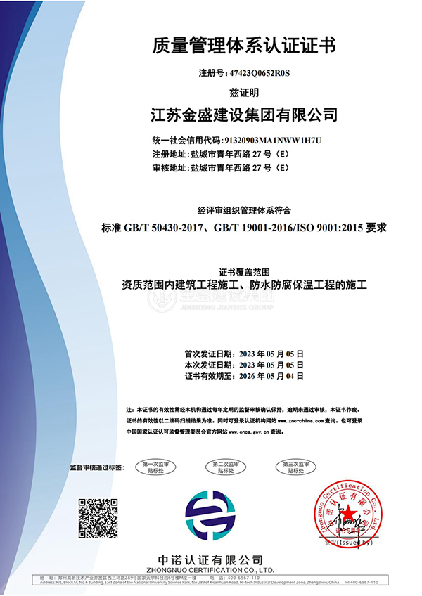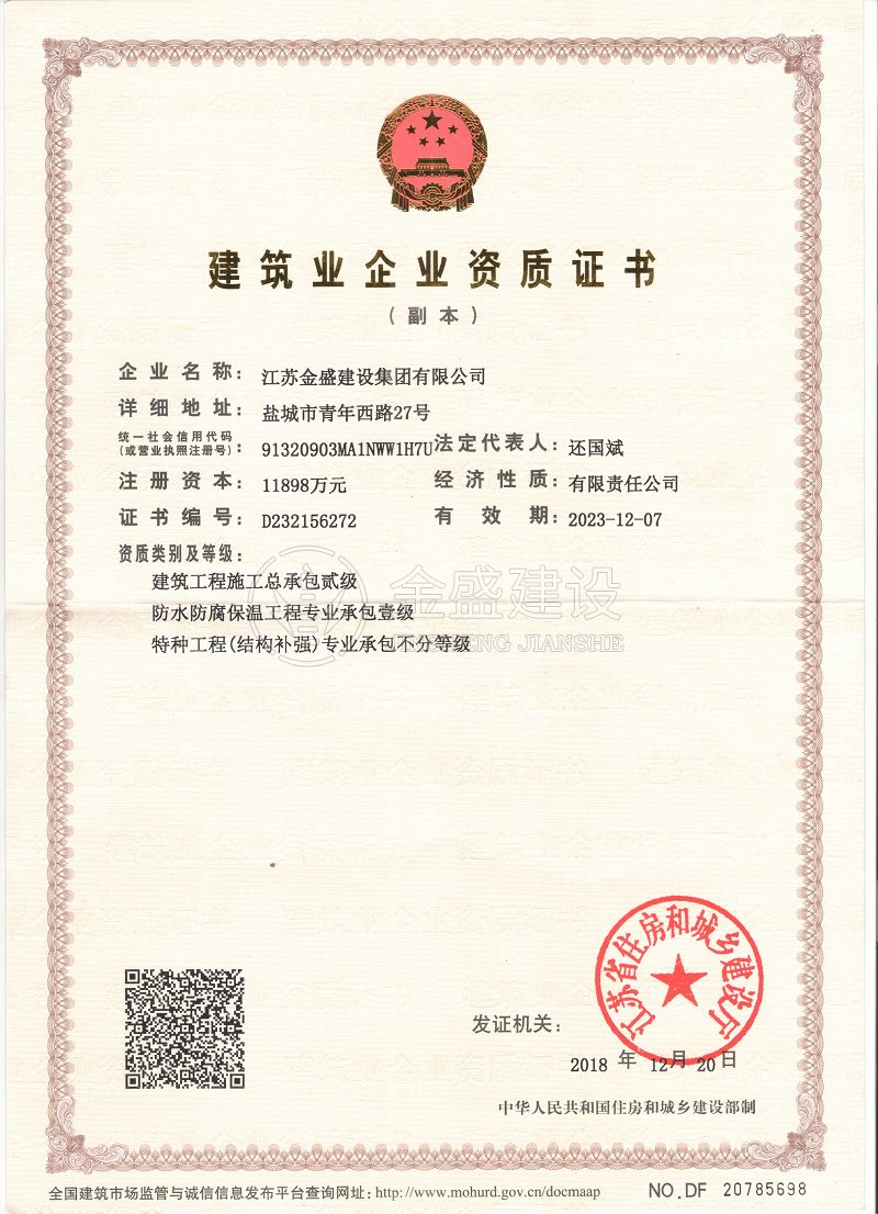 • 施工總承包貳級(jí)新防水防腐保溫工程專(zhuān)業(yè)承包一級(jí)
