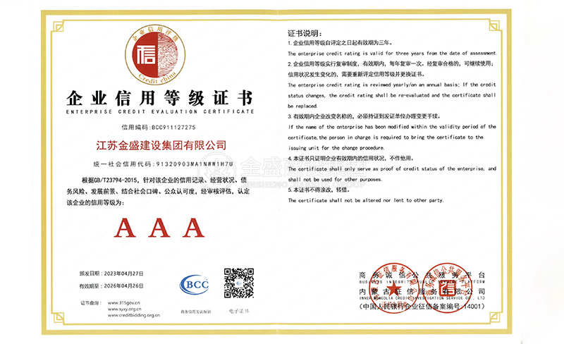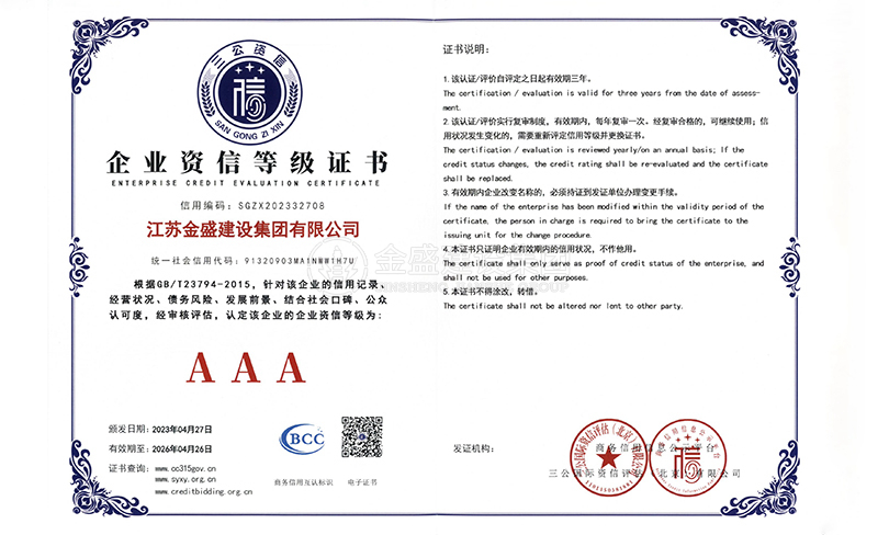 • 3A級(jí)資信等級(jí)證書(shū)