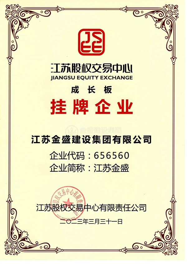 • 江蘇股權(quán)交易中心成長(zhǎng)板掛牌企業(yè)資質(zhì)證書(shū)
